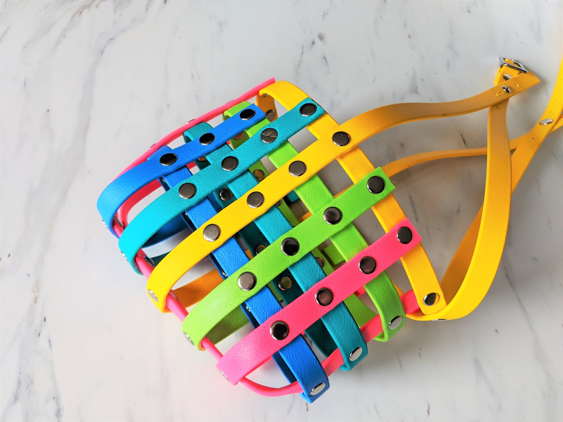 Basket Style Biothane Muzzle - Rainbow Colors - Level Two