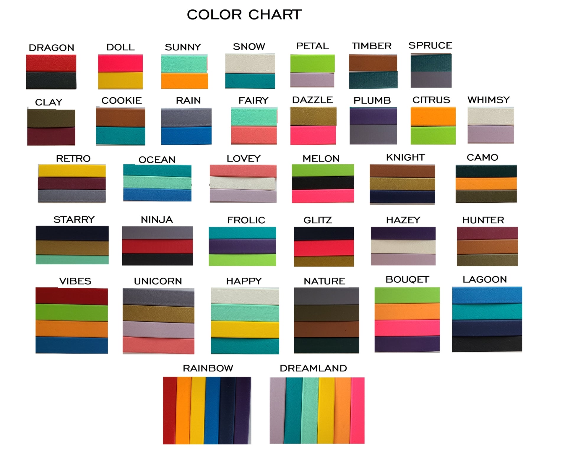 *Choose from the color combo options in the chart, or choose custom colors and place your request in the comments section