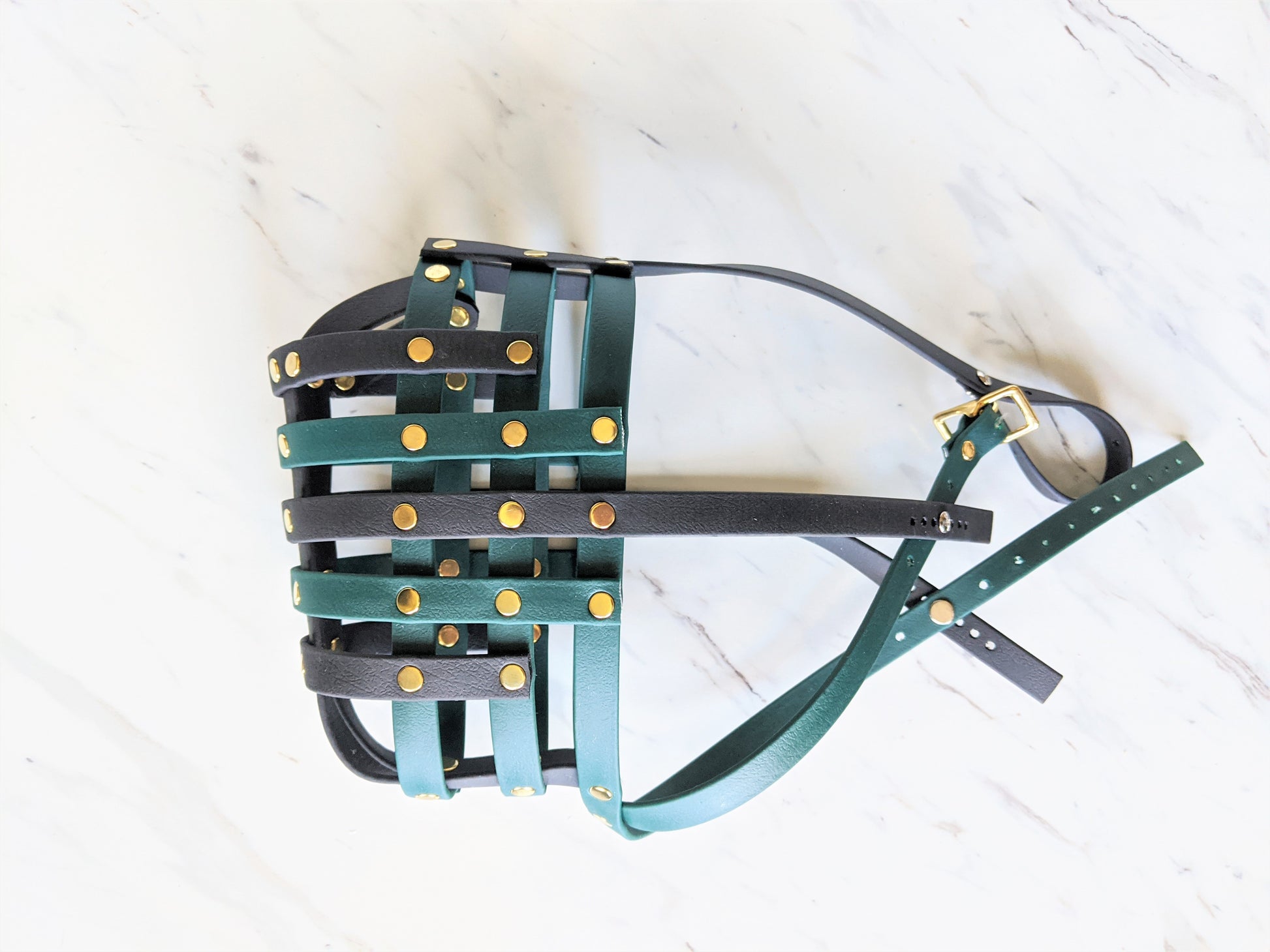Basket Style Biothane Muzzle with Open Nose plus Forehead strap - Choose your Colors - Level Two