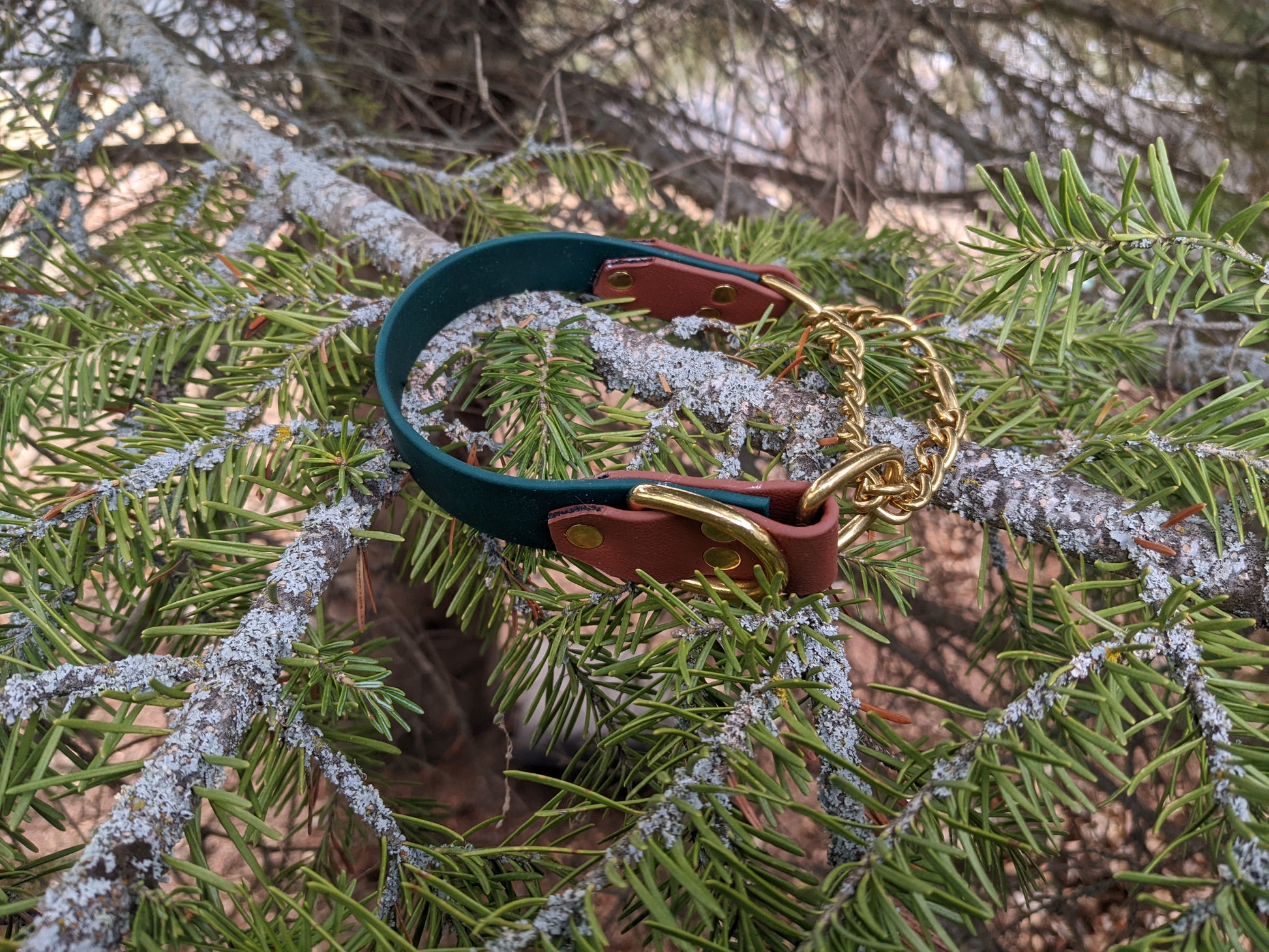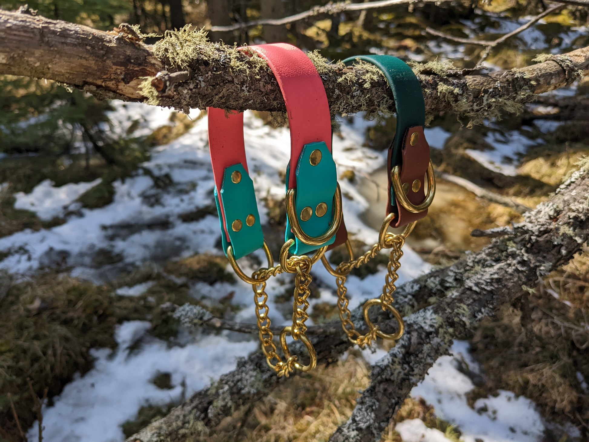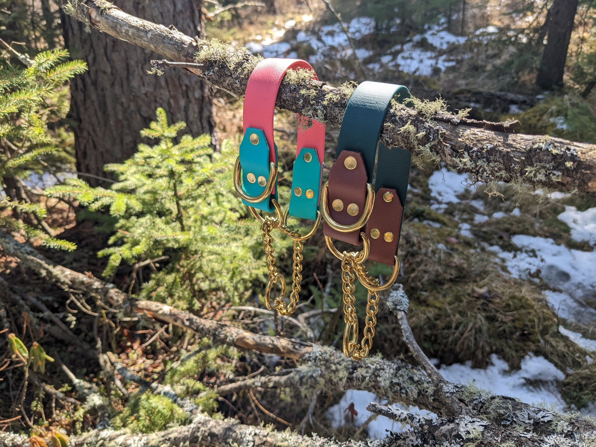 Our collars are made with Biothane, a strong rugged material that cleans up extremely easy with soap and water. Soft and almost leather like to the touch, and lightweight. A suitable choice for a vegan option.