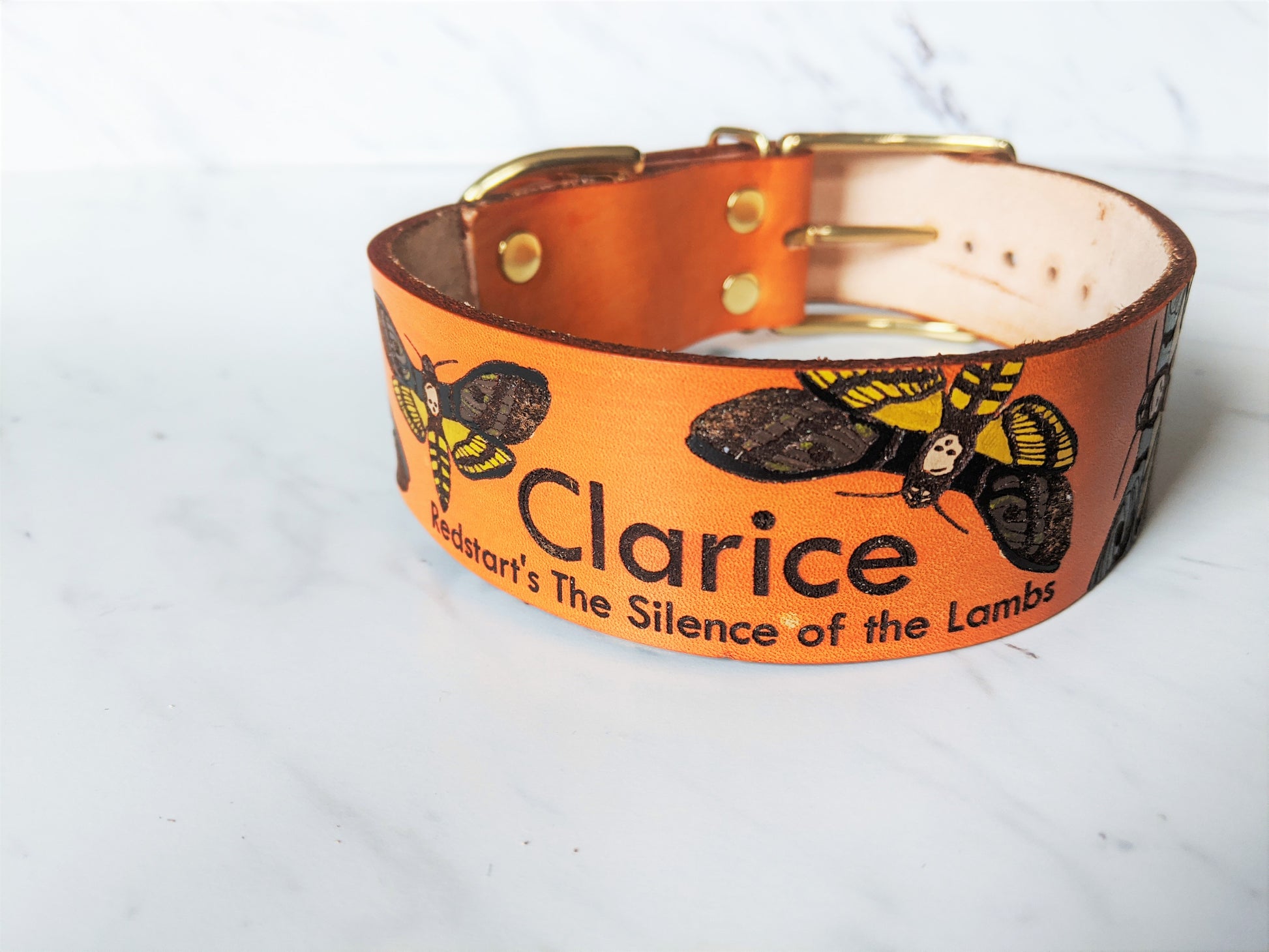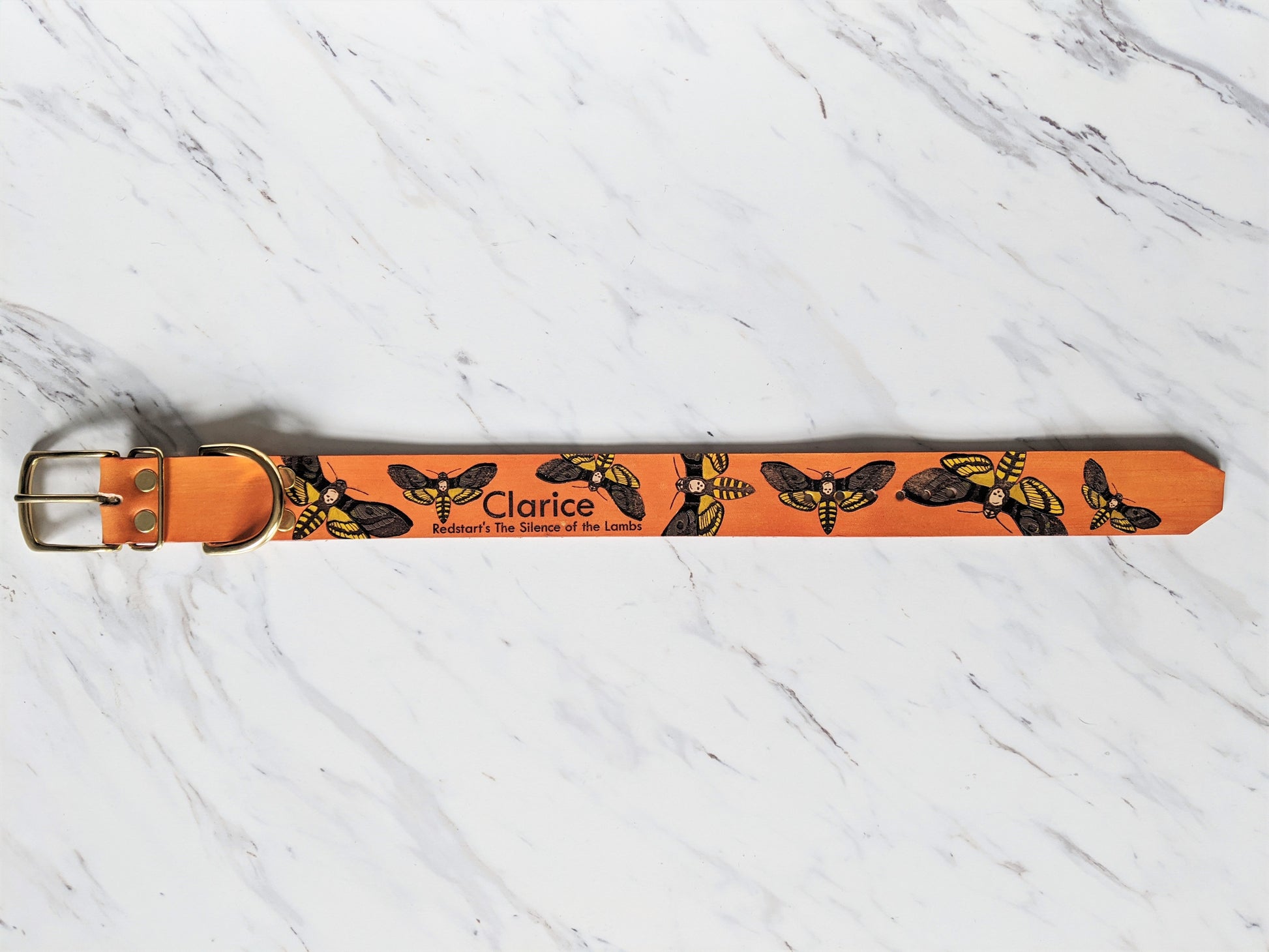 Custom handmade Leather collar with our Death Head Moth design. For that fava bean loving, lotion toting, fur friend.