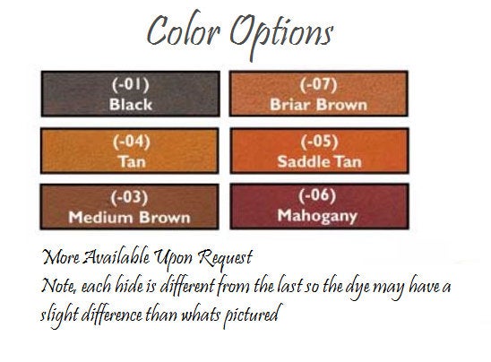 Made from high quality, thick vegetable tanned cowhide. All of our collars that have bright colors are hand painted with some of the best leather paints out there. Our base colors are dyed with antique gels. All dyes and paints are eco friendly and non toxic, just in case your dog decides his new collar is now a chew toy.