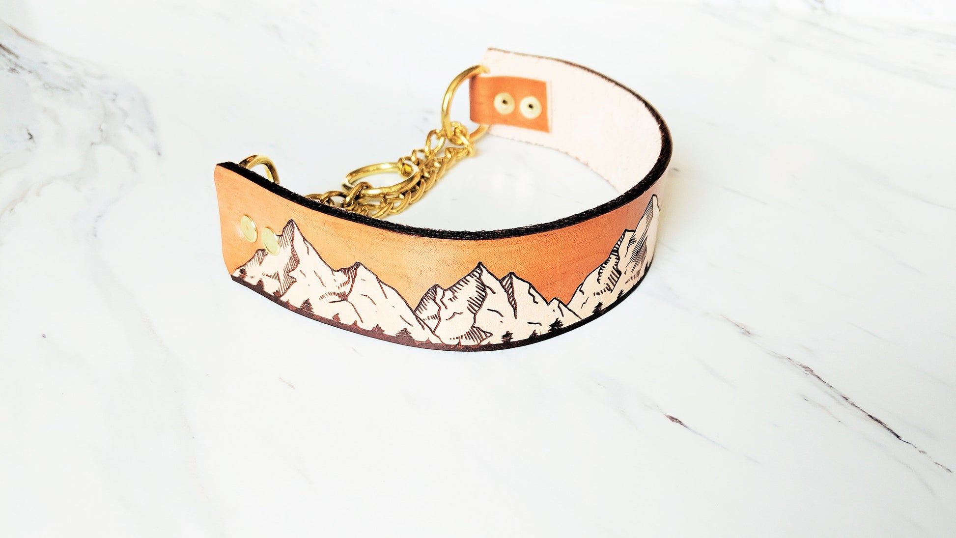 Made from high quality, thick vegetable tanned cowhide. All of our collars that have bright colors are hand painted with some of the best leather paints out there. Our base colors are dyed with antique gels. All dyes and paints are eco friendly and non toxic, just in case your dog decides his new collar is now a chew toy.