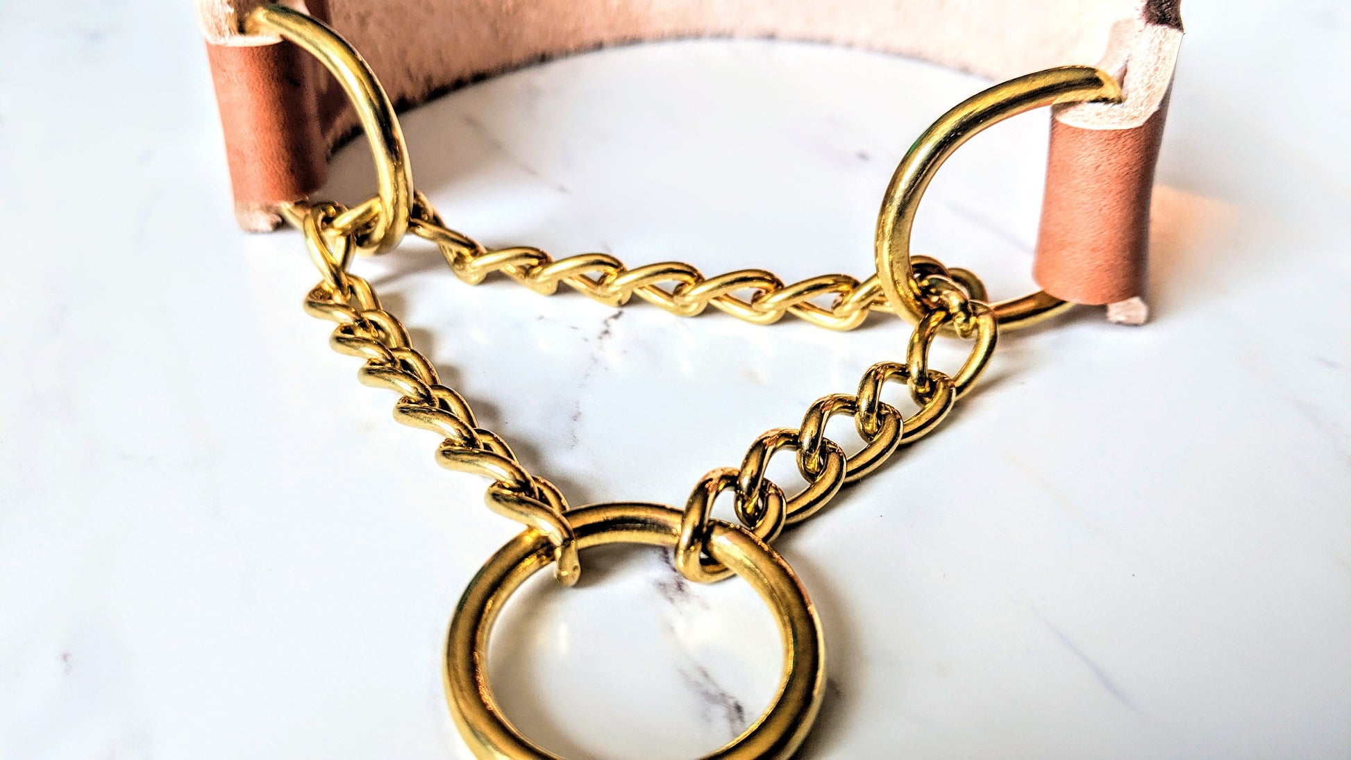 Vegetable Tanned Leather is tanned using eco friendly products like tree barks making it non toxic. It is the strongest type of leather to use and has little stretch to it compared to oil and chrome tanned leathers. Over time it will patina, darkening up the colors. It is a stiff leather that requires it to be broken in. Using olive oil to condition it every three weeks is ideal. Take a cloth and gently rub the oil into the backside of the collar and that's all. Never blow dry or heat the leather as it will shrink and crack under extreme heat. Outside temperatures are perfectly fine for the leather, even on those hot summer days. Getting your collar wet is ok too, just be sure to air dry it and then apply some oil. Think of it like your skin, dry hands require lotion. With proper care your collar will last a lifetime.