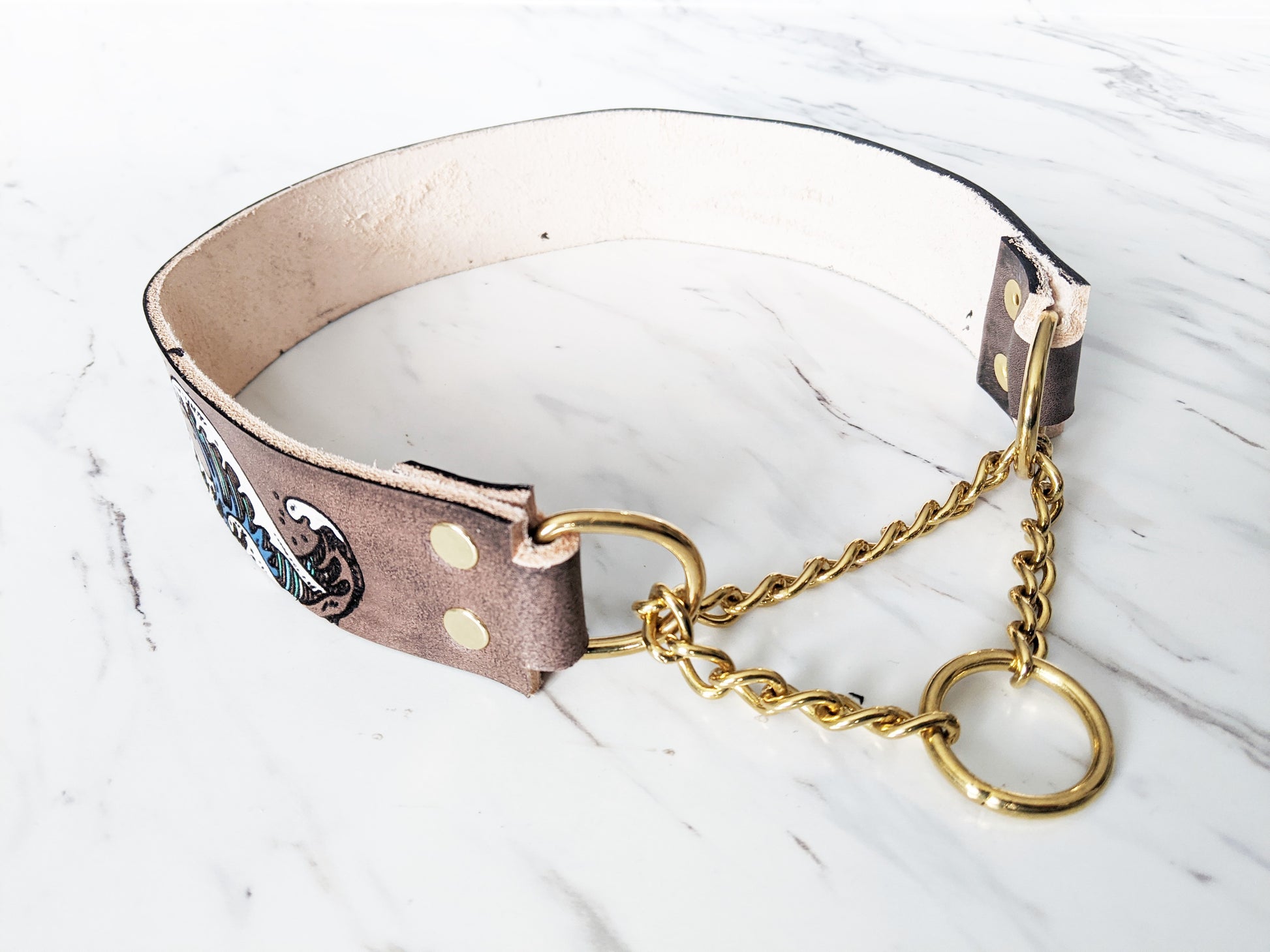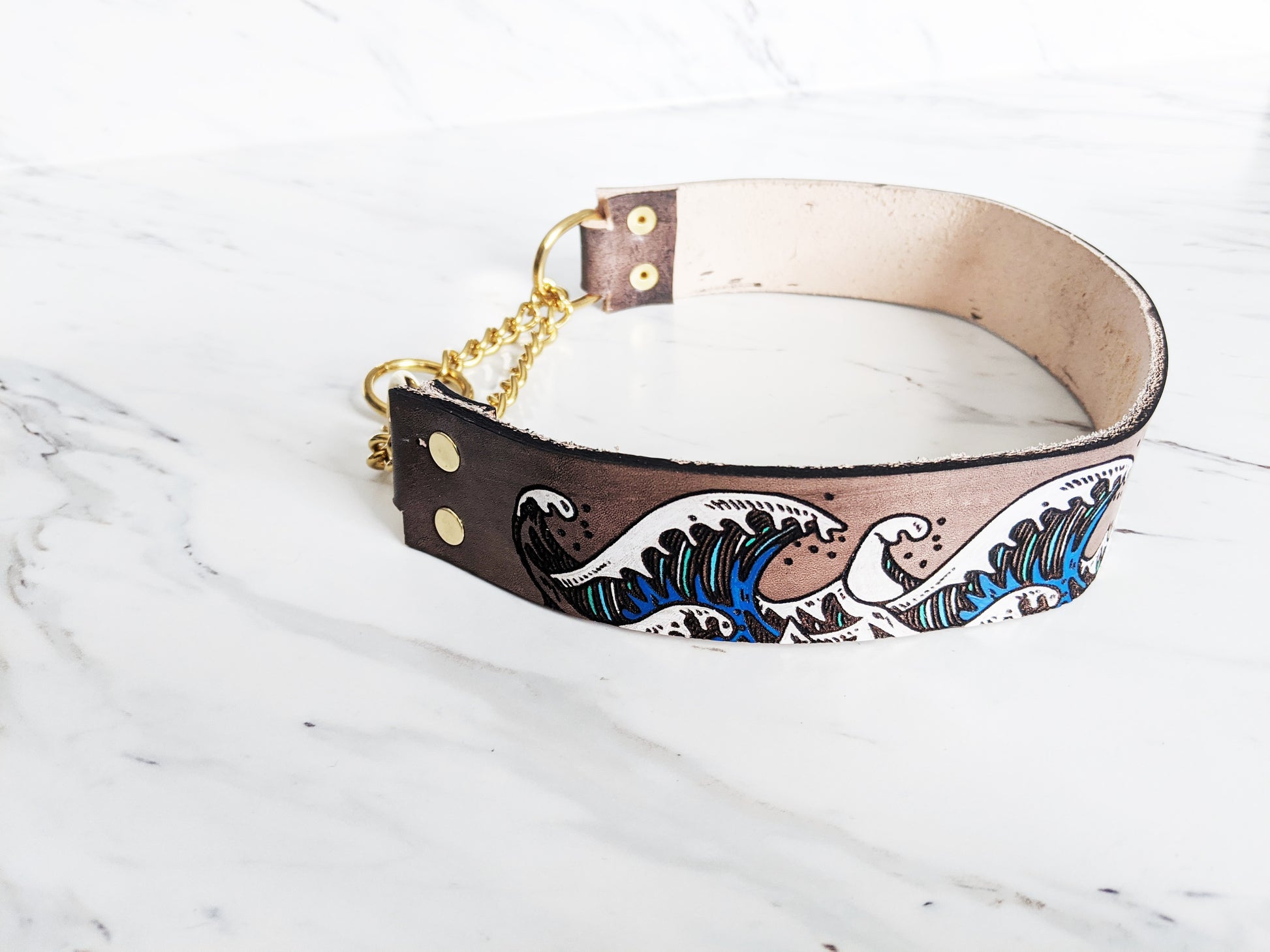 Ukiyo-e Wave - Leather Martingale Collar