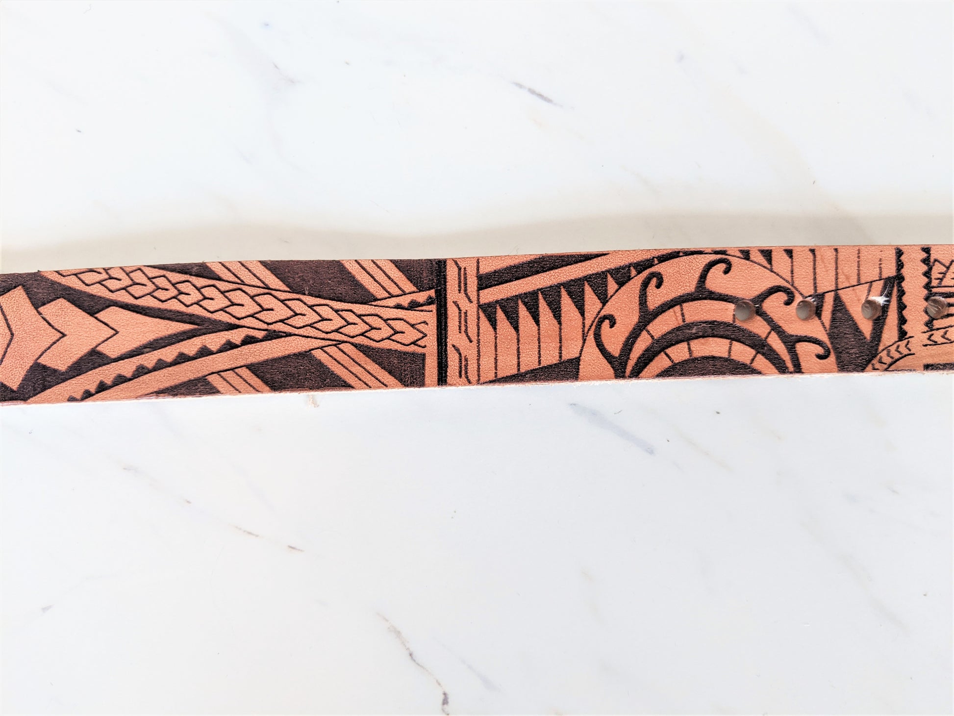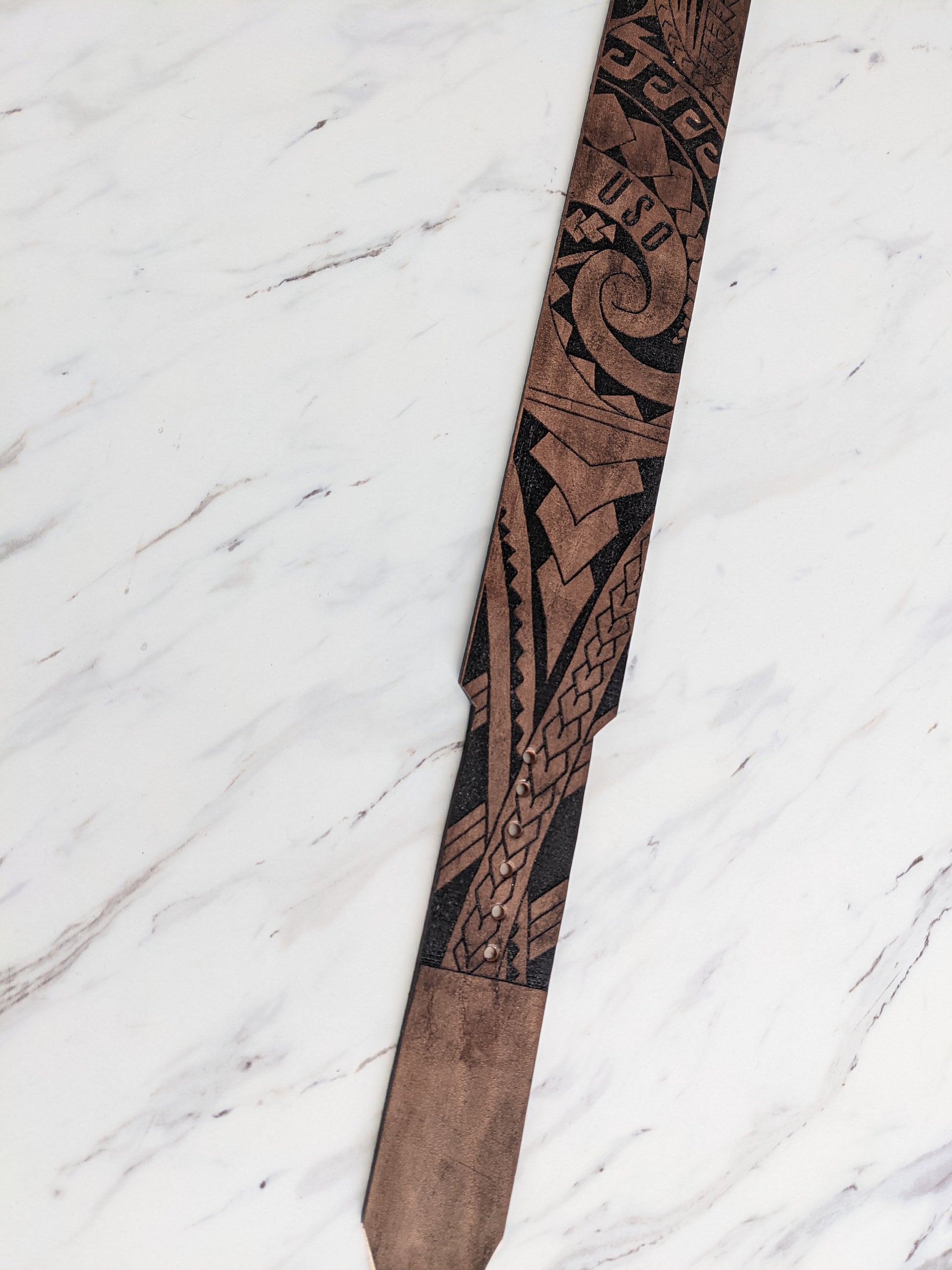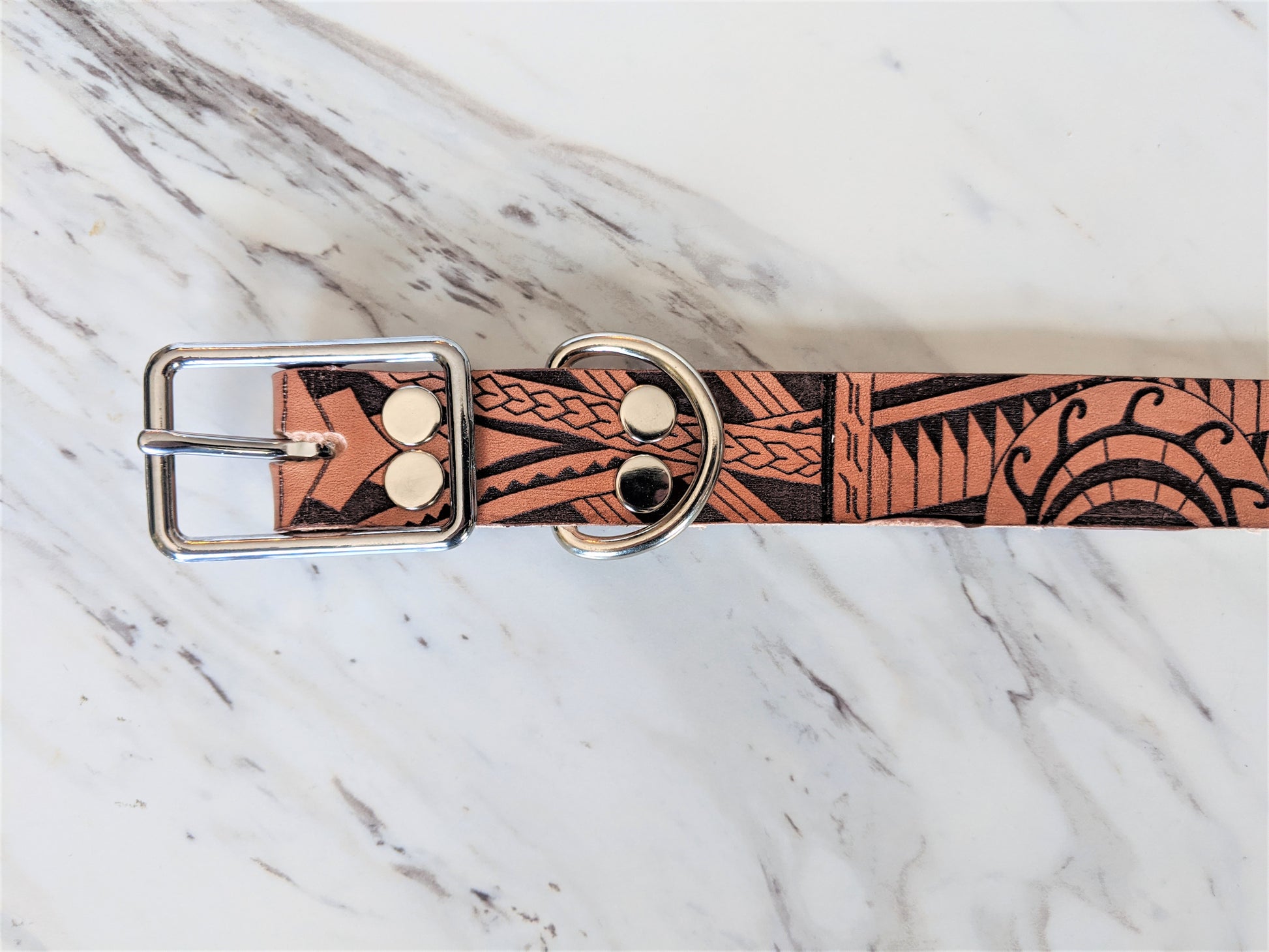 Custom handmade Leather collar with our Polynesian design.
