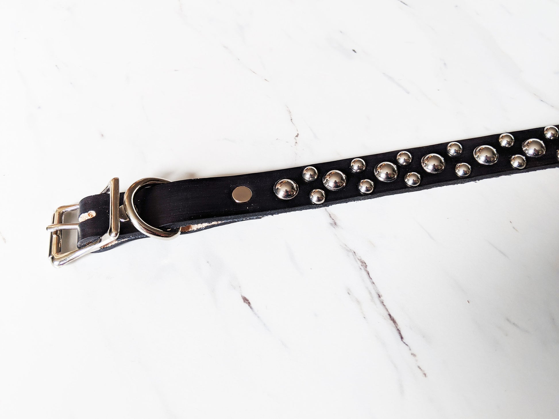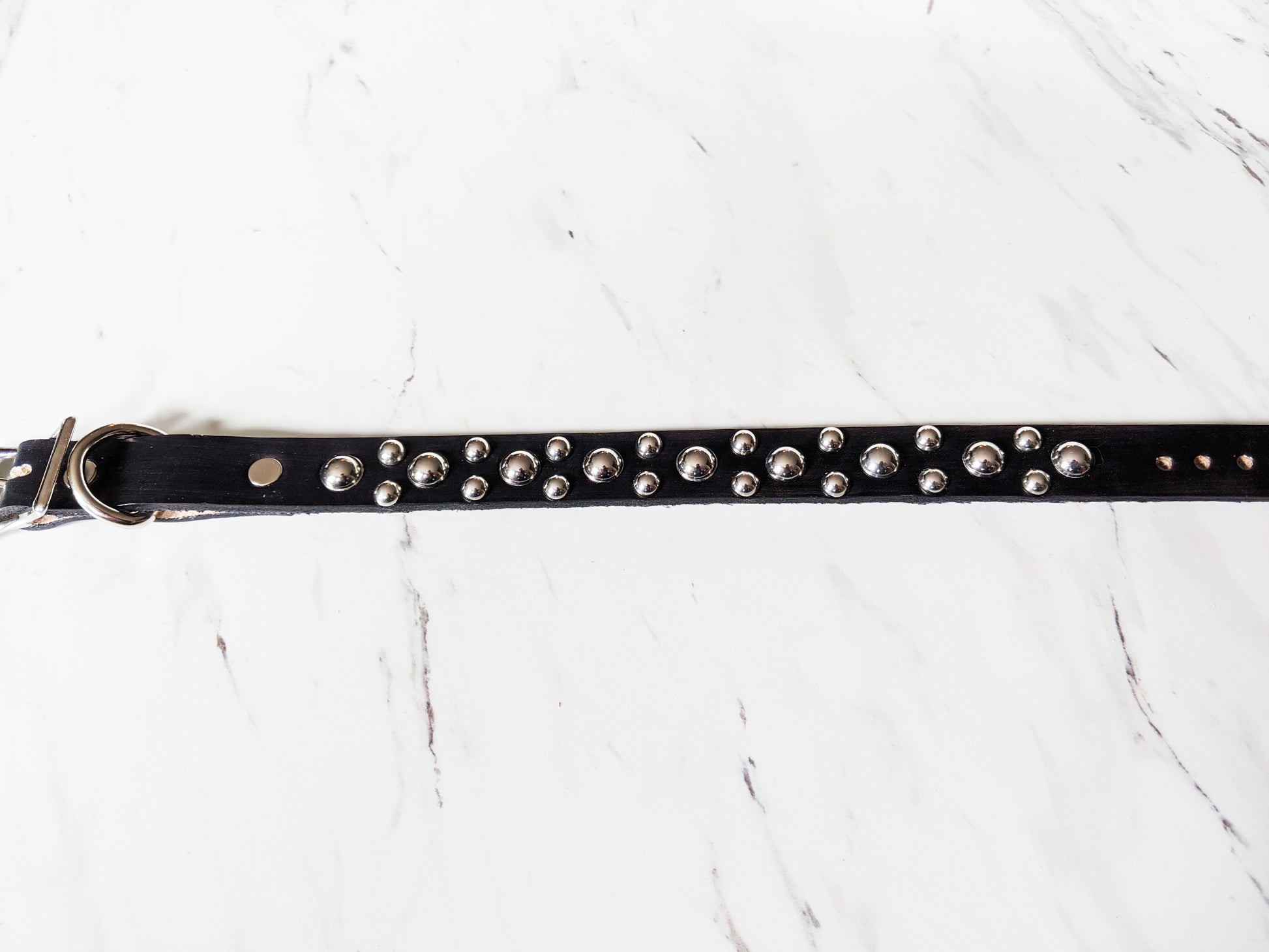 Made from high quality, thick vegetable tanned cowhide. All of our collars that have bright colors are hand painted with some of the best leather paints out there. Our base colors are dyed with antique gels. All dyes and paints are eco friendly and non toxic, just in case your dog decides his new collar is now a chew toy.