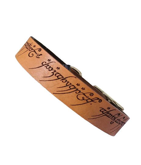 Custom handmade Leather collar with Mordor map design.