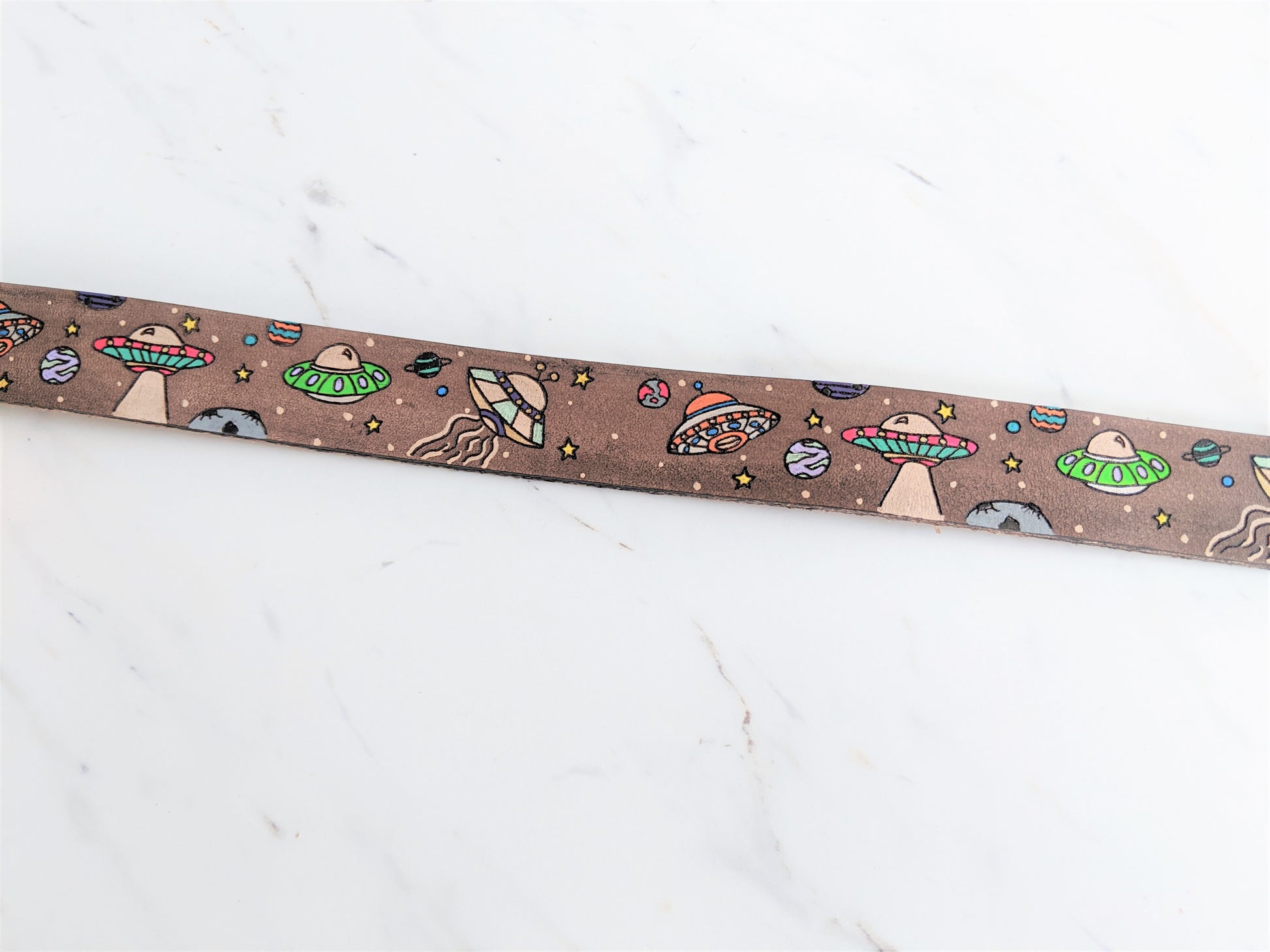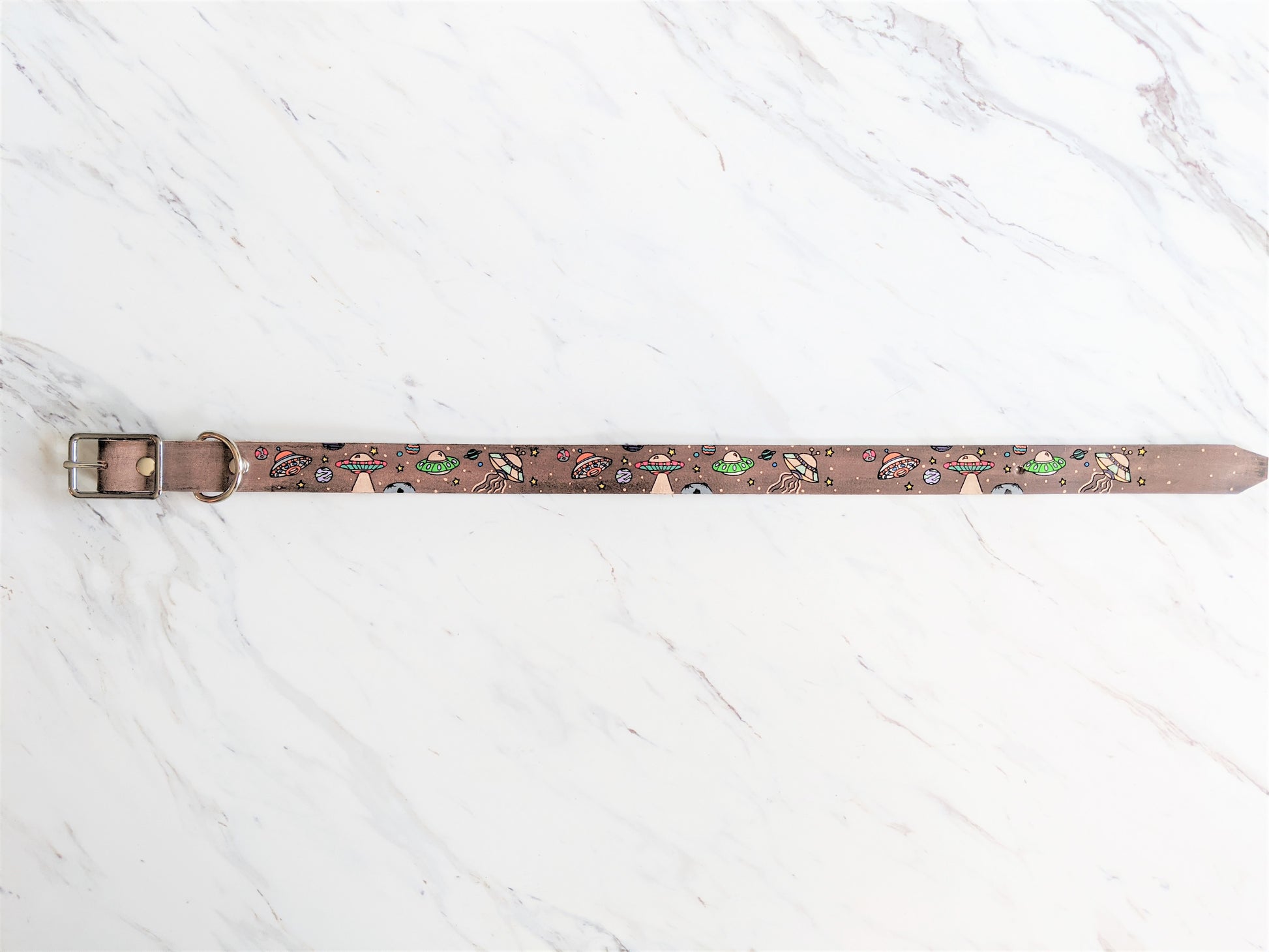 Custom handmade Leather collar with our UFO Alien Spaceship design.